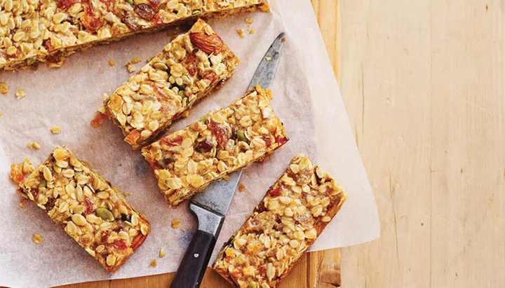 Packed with muesli and dried fruit, these apricot muesli bars are great when you’re low on energy!