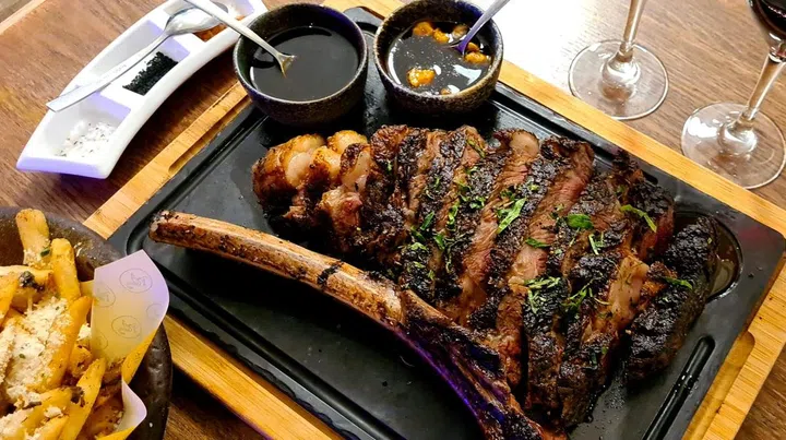 The beef is then cut artisan-butcher style to produce bone-in, inch-thick steaks - it's best known for its Tuscan-style sharing steaks so grab a buddy or your SO. Try the Fiorentina (MBS 6, $178++ for 900g or $220++ for 1.1kg), a classic T-bone that's cooked in the traditional Tuscan style — over a high-temperature wood-fired grill to yield a charred crust and tender, juicy centre.