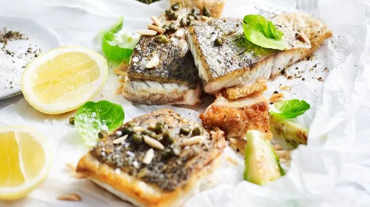 A lightly pan-fried barramundi cooked crisp on the outside, fork-tender on the inside pairs with roasted brussels sprouts, crispy capers and a kiss of lemon for a balanced and delectable meal. To amp up the carbs, simply pop on some baked potatoes or your favourite sides.