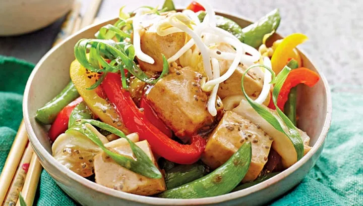 For a plant-based power option, tofu and chia seed — both of which are excellent sources of protein — come together for this flavoursome dish.