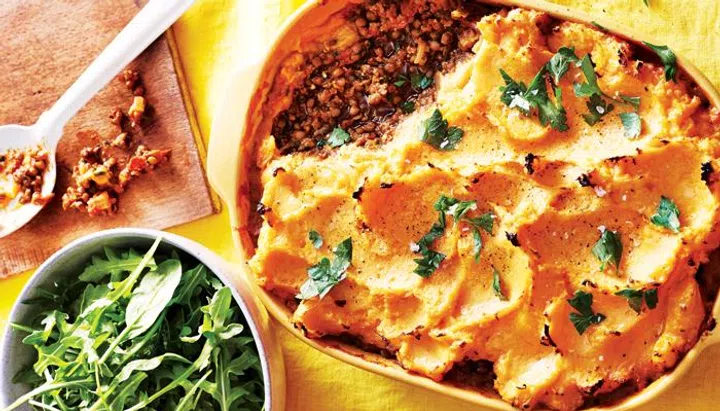 This spiced lamb cottage pie is food for the soul. Delve into the sweet potato topping and you'll be greeted by a fragrant mixture of lamb mince and lentils.