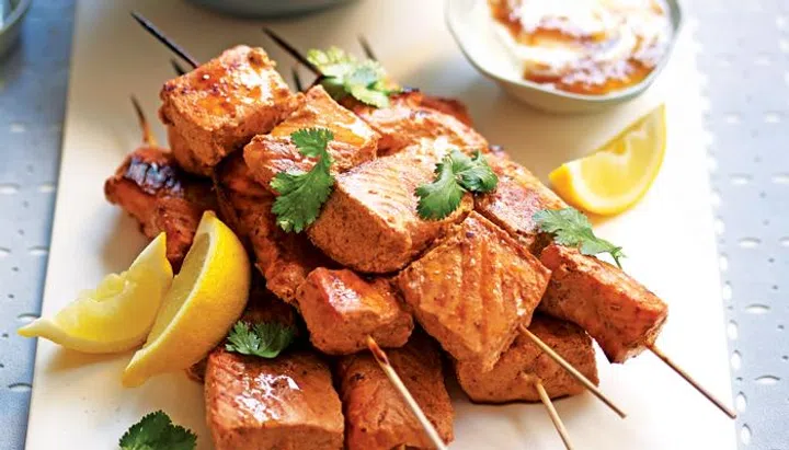 Mouth-watering kebab-inspired salmon skewers infused with tandoori, curry and other spices — this is sure to be the star of the dining table!