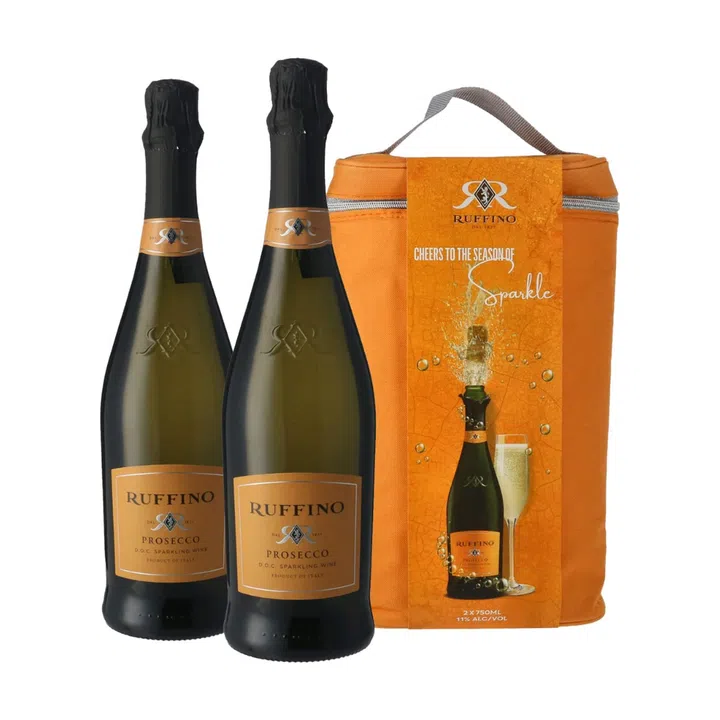 Listed in the top 9% of wines in the world, the Ruffino prosecco presents a bright fruity and floral finish with aromas of apples, pears, peaches and citrus fruits. Pair it with baked fish, gourmet pizza and more, or enjoy on its own as an aperitif. This twin pack also comes in a handy cooler bag, perfect for keeping your wine chilled while transporting around.