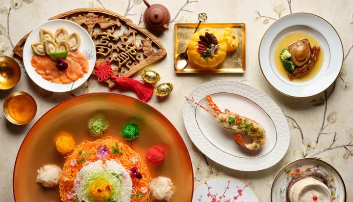 Get Wah Lok on your shortlist if you’re after traditional Cantonese dishes; there are seven- or eight-course set menus specially crafted by masterchef Ng Wai Tong and his team for the celebratory season. Dive into comforting and refined dishes like Steamed Live Soon Hock, Pan-fried Hokkaido Scallop with Golden Sauce, and Braised Whole Abalone.