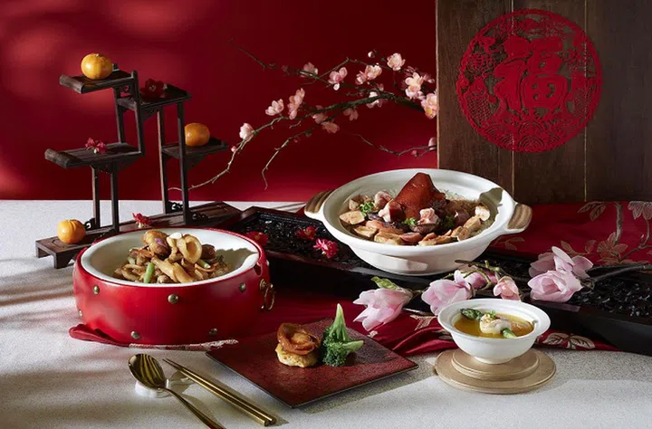 If you’re hankering after comforting Chinese soups and juicy chicken slices, Soup Restaurant is your spot, because the homegrown restaurant group is known for just that - double-boiled soups and its signature ‘Samsui Ginger Chicken”. Apart from those, it’s also got a slew of Chinese New Year goodies on its set menus, such as Traditional Steamed Rice With Baby Abalone and Chinese Sausage, as well as Fish Maw Soup with Crab Meat and Scallop.