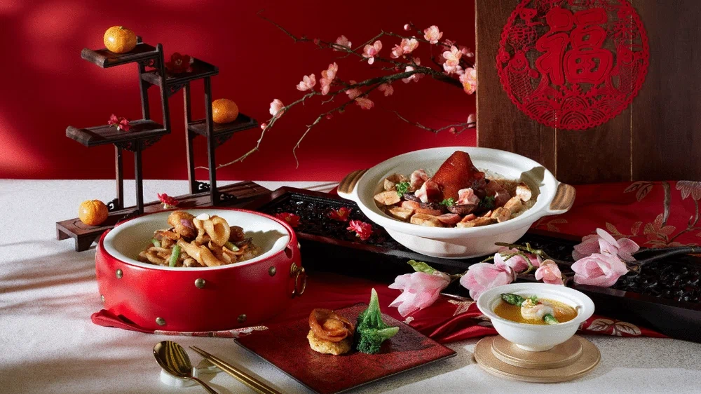 On its festive set menu, you can look forward to deftly-crafted dishes like Double-boiled Fish Maw Consomme With Red Dates And Wolfberries, Steamed Sea Perch Fillet With Bell Peppers, Boston Lobster With Signature Homemade XO Sauce, and Double-boiled Eight Treasure Hashima Soup and Glutinous Rice Cake.