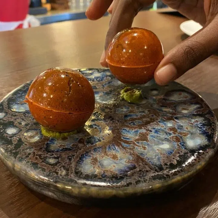 THE SIGNATURE DISH: Pani Puri from modern Indian grill restaurant Thevar.