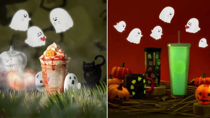 Aside from a new drink, there's also a collection of Halloween-themed merch, including cat- and ghost-shaped drinkware that tells an adorable story of a timid ghost and his best friend black cat, as well as a glow-in-the-dark tumbler, mug, and cold cup.