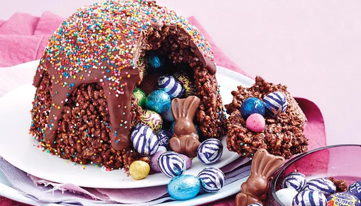 Celebrate Easter holiday by creating a fun cake the kids will love – crack it open to find lots of chocolate treats inside to surprise everyone!