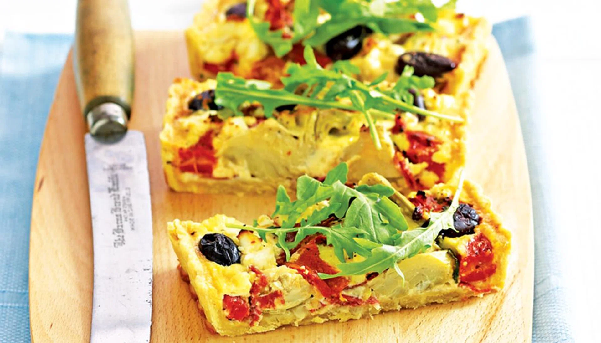 This antipasto quiche is packed with juicy vegetables and held together by a frothy and creamy egg mixture, perfect for a light lunch or savoury snack