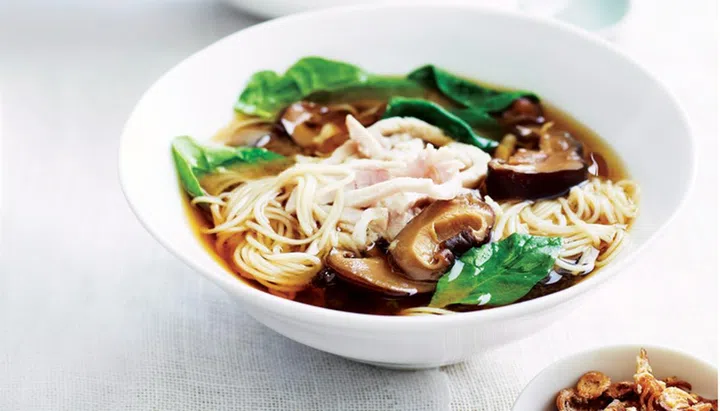A simple take on classic soup noodles with roasted meat, this pork and noodle broth is both wholesome and hearty!