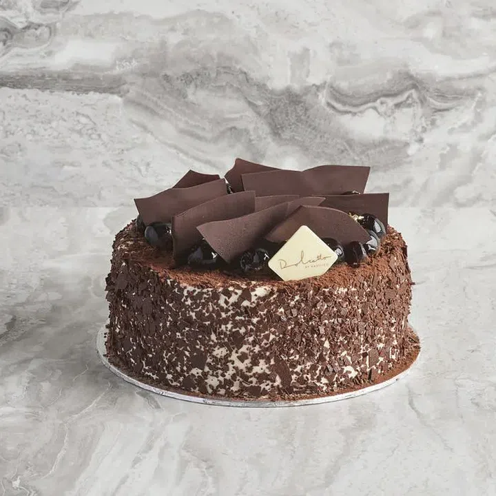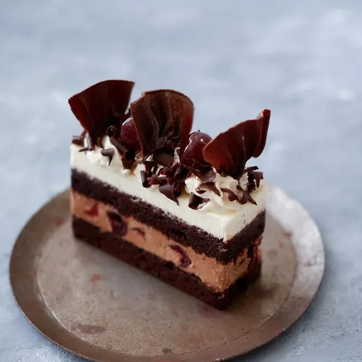 This small patisserie with outlets at 275 Outram Road and 9 Penang Road (UBS Singapore building) offers a modern take on the Black Forest Cake. Their rendition has moist layers of Kirsch-soaked chocolate sponge, fresh cream and Morello cherries steeped in liqueur and Kirsch. It is finished with a layer of Valrhona 66% dark chocolate drizzle and adorned with gold-dusted Kirsch-soaked cherries and whipped cream.