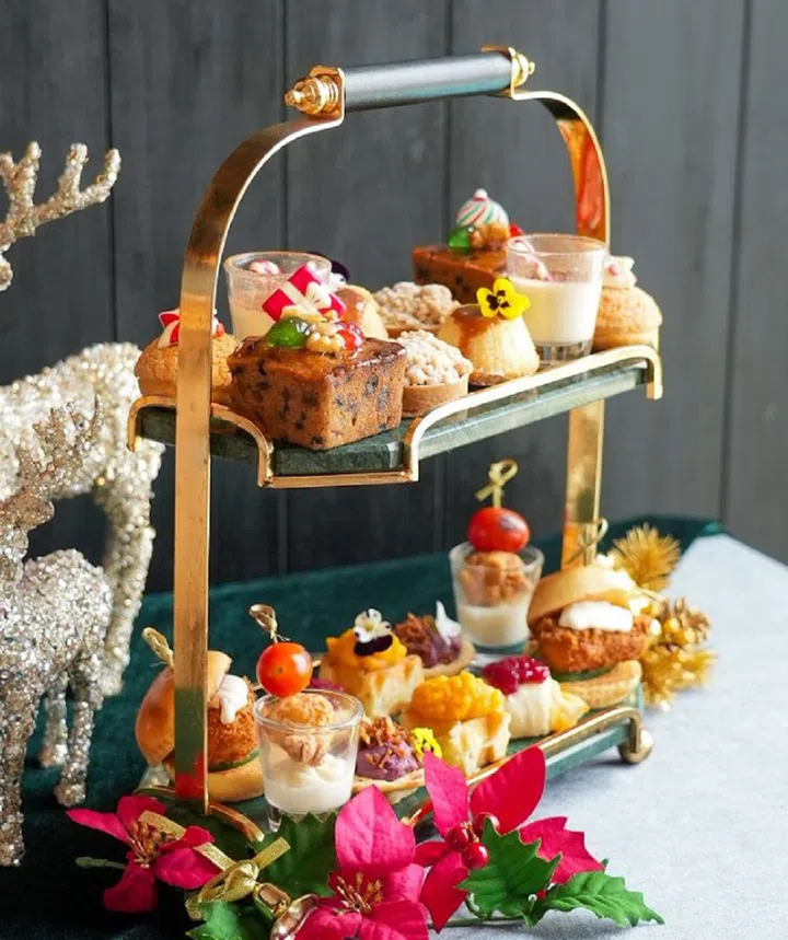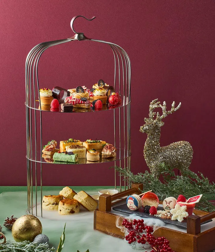 You'll definitely be feeling the festive spirit with Shangri-La Singapore's medley of savoury sandwiches and desserts all presented on an eye-catching Christmas tree-shaped afternoon tea stand. Enjoy a delightful selection of sandwiches like Bourbon Maple Glazed Ham with Red Currant, Truffle Egg and Parmesan Puff, Roasted Turkey Ragout with Wild Morel, and Cheddar in Sundried Tomato Brioche. Then round off the enchanting experience with delectable desserts, including Chestnut Mont Blanc Tart, Foret-Noire, and Citrus Tea Cake.