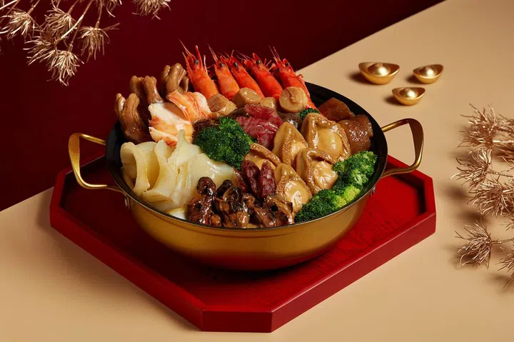 You can count on consistently good Chinese food from the award-winning Wan Hao Chines restaurant. For the festive occasion, it's dishing up the Wan Hao Imperial Pot of Prosperity ($588 nett, serves 5 persons; $1088nett, serves 10 persons), a trad pen cai packed with collagen and rich nutrients. Think 3-head Australian abalone, premium conpoy, sea cucumber, crispy ‘Sha-jing’ oyster, goose feet and marinated Chinese wine free-range chicken.