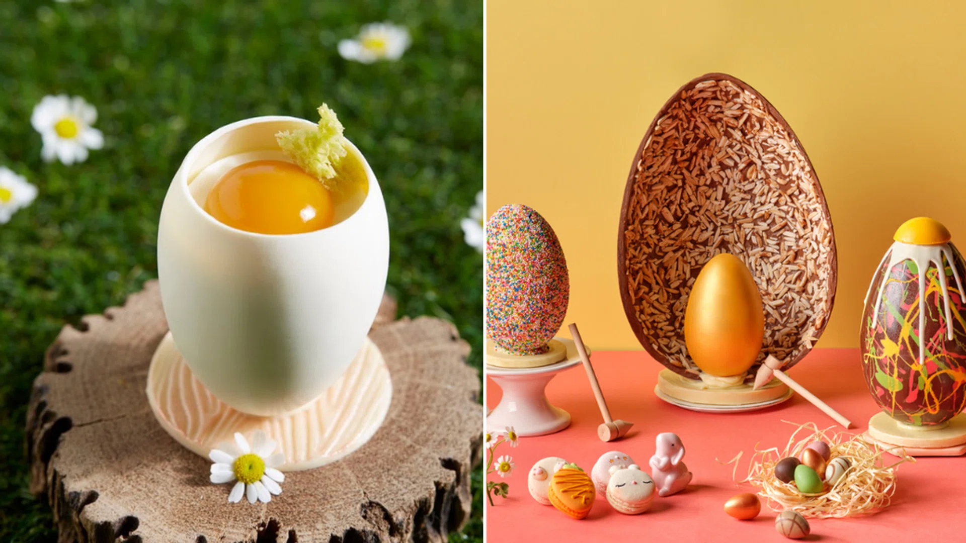 Fried Egg On Egg, Technicolour Chocolate Egg and Almond-Crusted Egg, $62.06 to $179.76, Pacific Marketplace