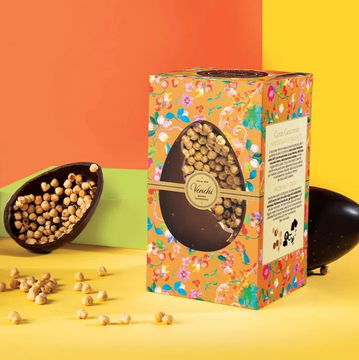 Inside this decadent dark chocolate shell by Italian chocolate maker Venchi, whole Piedmont hazelnuts add a crunchy surprise. It's also presented in a lovely floral box that's perfect for gifting.