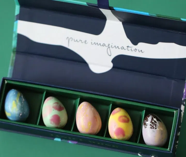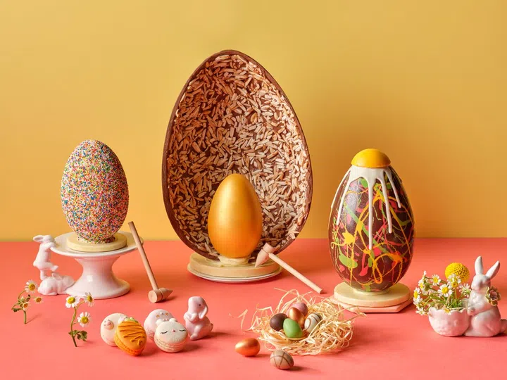 In three sizes, homegrown chocolatier Anjali Chocolate's handmade and decorated Easter eggs come with a surprise (two chocolate bonbons or mini eggs) inside. Or for a quirky take, there's the Easter hen in an egg-like shape, too.