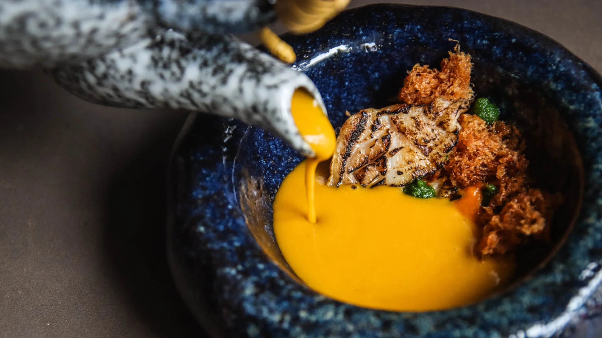 Lending a fresh perspective to Thai cuisine is head chef Miller Mai, who used to work at modern Southeast Asian restaurant Ding Dong. Highlights of the tasting menu ($148++) include Tom Kha Gai, baked chicken wings served with foie gras-infused sticky rice and tom kha creme, and Gaeng Som Fak Thong, Chilean sea bass with Japanese pumpkin, curry and Thai fish floss. Save space for the signature salted ikan kurau fried rice, which features six-month cured threadfin, crab meat and tobiko, and Miang Kham, which comprises wild betel leaf, secret Thai miang reduction, Rayong dried shrimp, Hokkaido ikura.