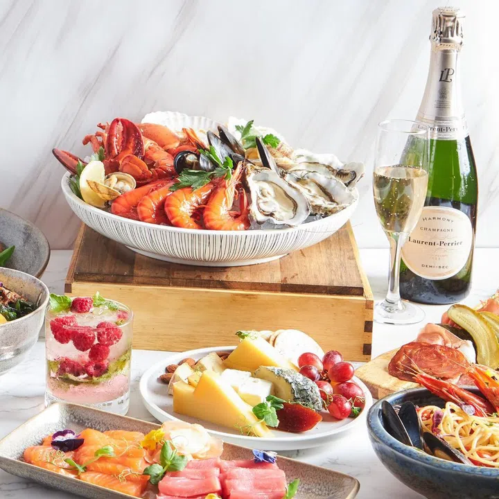 Start with a free-flow of antipasti including freshly shucked Tarbouriech, Tsarskaya and Cocollos oysters as well as char-grilled Boston lobsters, cold cuts, crudo, and a variety of fine cheeses. Then move on to the likes of crab tramezzini with caviar, cacio e pepe arancini, slow-cooked eggs with black truffle, and wood-fired pizzas. You can even enjoy a repertoire of dishes whipped up a la minute at your table, from grilled Sanchoku wagyu beef tomahawk to the Easter specials of whole-baked New Zealand lamb, and lasagna di pasqua.