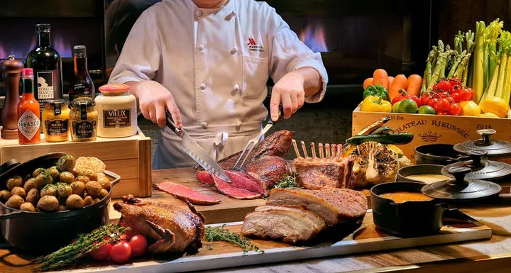 Pile your plates with other highlights like Crispy Suckling Pig, Baked Oyster with Sea Urchin Cheese, Coquilles Saint-Jacques, and more. For a sweet conclusion, look forward to Easter desserts like the light and airy Pavlova, comforting Apple Tarte Tatin, a Bomboloni Live Station, and more.