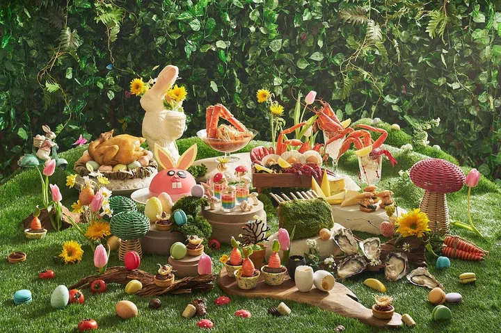 Of course, there's the dessert table with whimsical Easter treats like a Caramel Blanc Manger ‘Flower Pot’, and “The Hatter” Toffee-Nutella Chocolate Cake. To keep the kids entertained, there's an Easter Egg Hunt (the winner scores cool prizes like a one-night stay), alongside activities like face-painting, balloon sculpting, and an indoor bouncy castle.