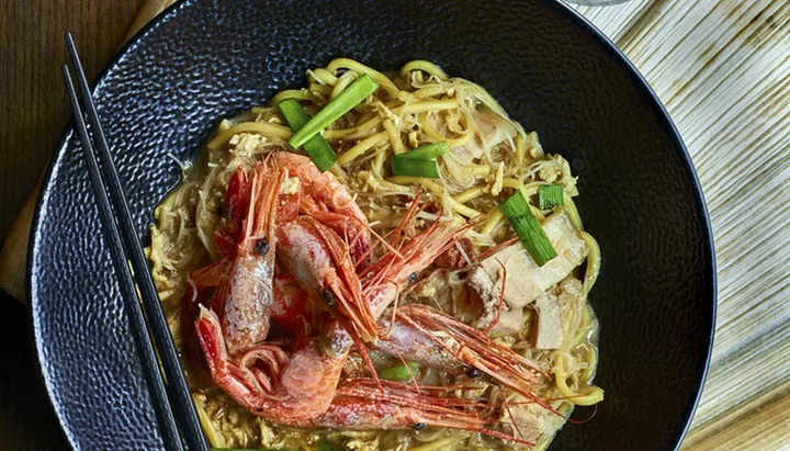Chef-Owner of Le Binchotan, Jeremmy Chiam puts a European twist on a classic local favourite. This Hokkien Mee uses French-style prawn bisque as its base.
