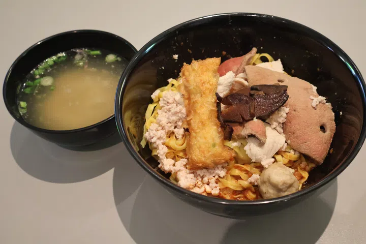 There was a generous amount of minced meat and pork slices, as well as two big liver slices that were cooked just right. There was also a large fishcake, one meatball, and plenty of mushrooms that ensured that every bite had a bit of something. The chilli mixed with the noodles was not too spicy, and the accompanying soup was extremely flavourful.