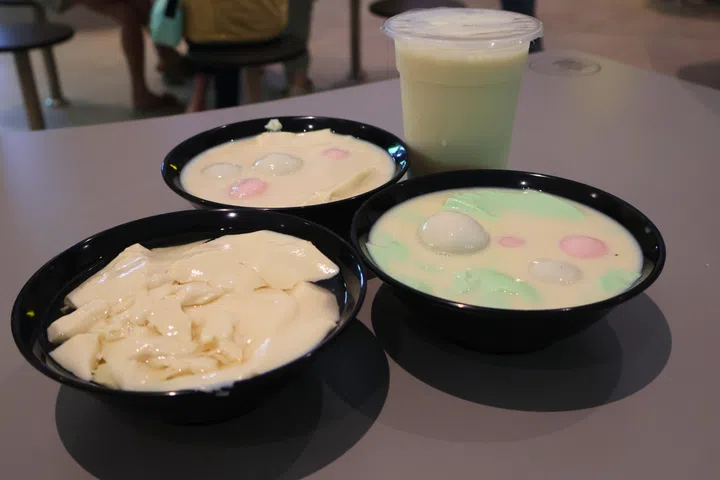 Apart from the soy milk, we tried three of the store’s desserts: Beancurd Rice Balls with Soy Milk ($3.50), Traditional Beancurd ($2.50), and Pandan Beancurd Rice Balls with Soy Milk ($3.80).