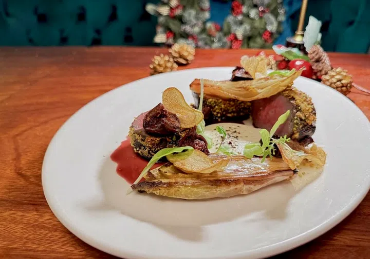 Diners can choose between a two-course ($38++) or three-course ($48++) meal, featuring holiday favourites like a vibrant Christmas Salad with regional ingredients, Sous Vide Turkey Breast Roulade with red wine sauce, and a rich Chestnut-Chocolate Brownie with fresh berry compote.