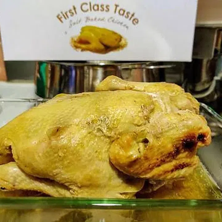 Salt baked chicken is a time-honoured Hakka dish that cannot be easily found these days as a lot of effort is needed to prepare this seemingly humble dish. The traditional way calls for a whole chicken to be completely covered with a large amount of stir-fried salt before it is baked.
