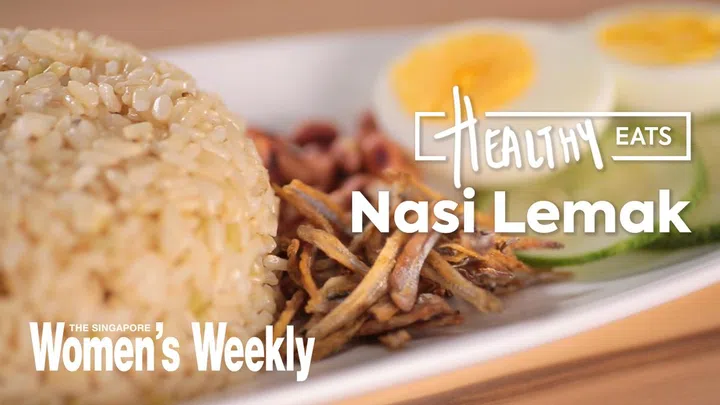 A regular nasi lemak can get up to nearly 900 calories, especially if you add a piece of fried chicken. If you love nasi lemak but don’t want the calories, try this healthy version by chef Alexandra Prabaharan. This tasty 398-calorie nasi lemak recipe comes with clever substitutions for ingredients and cooking methods (i.e. to use less cooking oil), so you can still have your fragrant rice dish without the added calories.