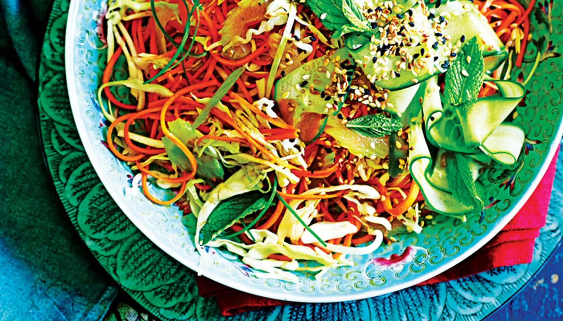 There is an absolute freshness and vibrancy to this salad that makes it delicious by itself, or with cooked prawns, cooked chicken or steamed fish fillets.