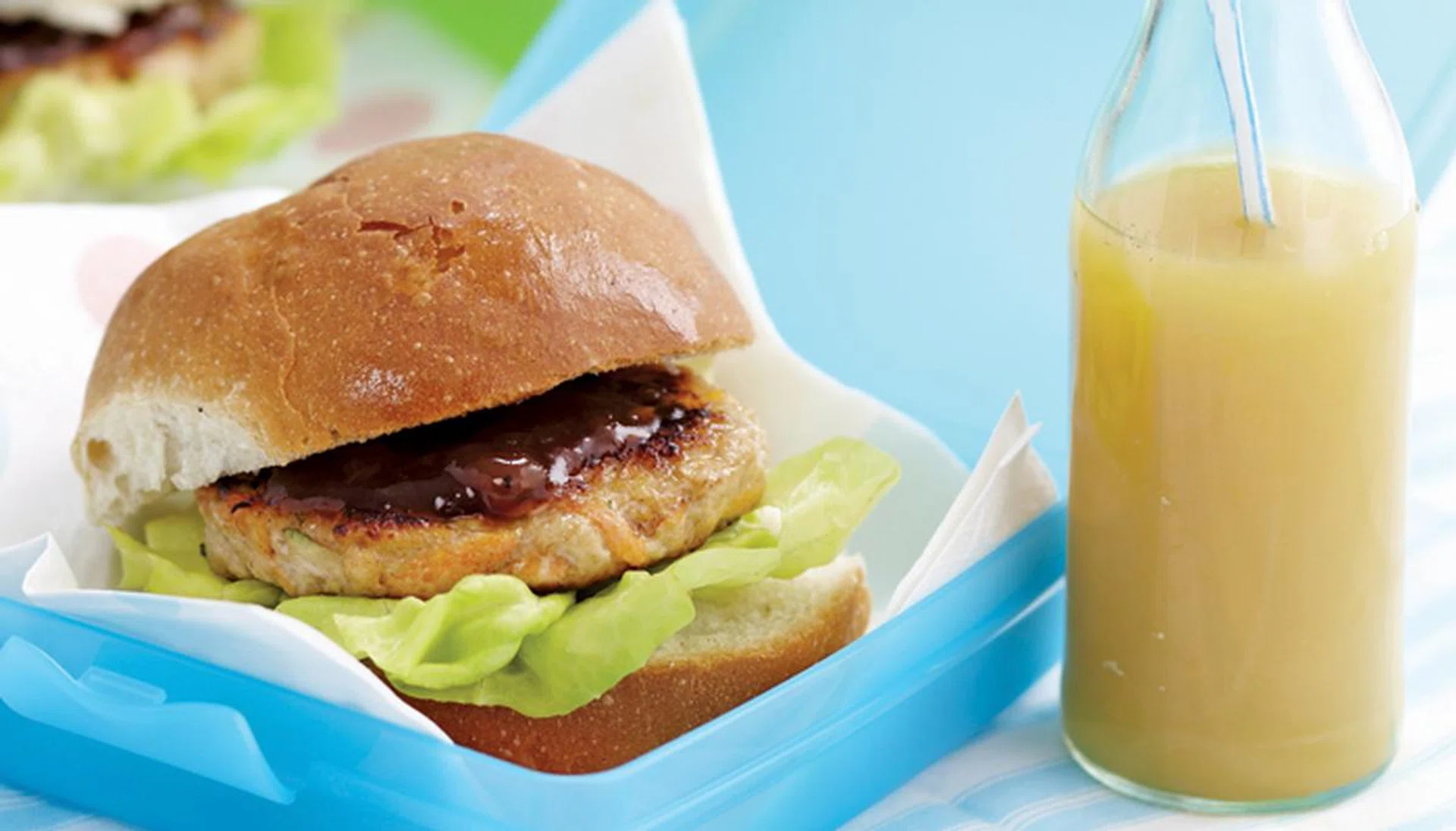 Sneak vegetables into the patties of these chicken rissole burgers, drizzled with tomato chutney to give your kids the nutrition they need