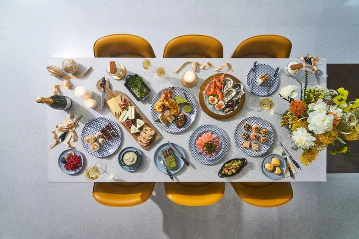 For a celebration at home with the family, get the Festive Afternoon Tea Set from Tablescape, which presents new and classic offerings. There's a Mini Chocolate Caramel Log Cake and irresistible Truffle Praline Crème Brulee, alongside savoury nibbles like a Bigne with Turkey, Chestnut and Onion, and delicious House-smoked Salmon on Sourdough with a Lemon-Ginger Aioli and Ikura.