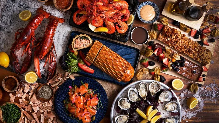 Dig into roasts with a twist like the Mesquite Marinated Roasted Whole Turkey, citrusy Yuzu Marmalade Glazed Honey Baked Ham and BBQ Gochujang Pork Ribs with a sweet and subtly spicy glaze. if it's fish you prefer, go for the Chilli-Lime Coriander Glazed Slow Baked Salmon ($98+) which gets our thumbs up — it's slow-cooked till moist and tender, with tangy, herbaceous, and subtly spicy flavours.