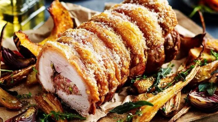 For those who prefer pork over turkey, you can still indulge in festive flavours with this recipe. The dried cranberry stuffing gives this dish a very Christmas flavour, but that familiar festive taste is updated with salami and pistachios. It looks so traditional and gourmet, your guests will rush to take photos. Do note that this recipe is best for more experienced cooks.
