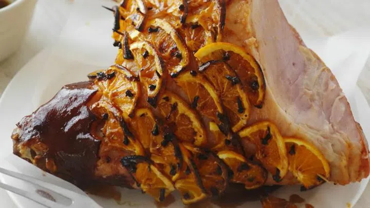 Another recipe that makes use of citrus fruits, the ham is covered with caramelised orange slices that give it that zesty flavour of Christmas. The recipe also uses orange juice and orange marmalade, so you can be 100% certain that this dish will delight citrus lovers. With the combination of savoury-salty from the ham and sweet-sour from the orange, you can be sure this unique looking roast will be a crowd pleaser.