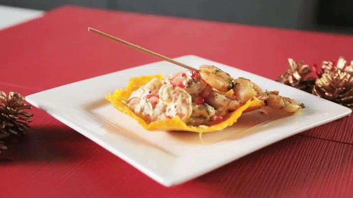 Need a banger of an appetiser to kickstart the meal? This Yummy Shrimp Cocktail Appetiser is served in a cheese basket and comes with zesty dipping sauce to tie everything together.