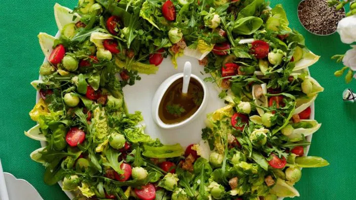 After the appetizer comes the salad, and we have an absolutely festive one to share. It's shaped in a wreath, but it's not complicated. You only need the ingredients you find in any other normal salad.