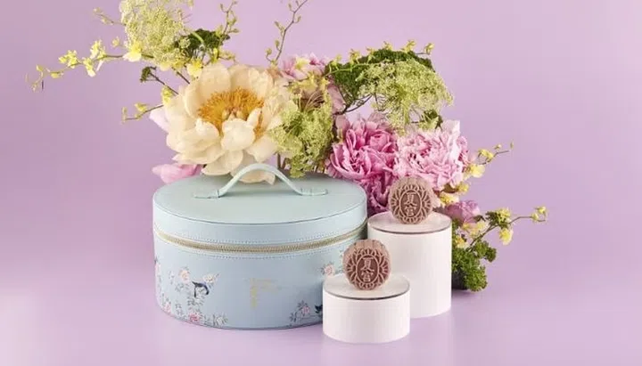 Get this and other mooncake selections from the heritage hotel in a cream-pearl box adorned with an illustration of Raffles Hotel’s iconic facade.