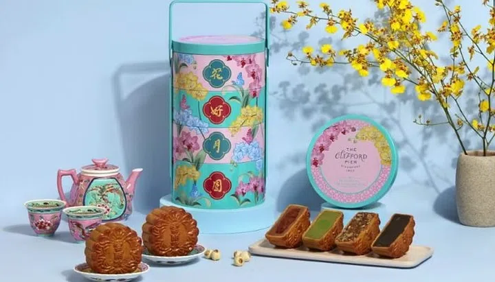 Heritage restaurant The Clifford Pier at The Fullerton Hotel Singapore celebrates its 90th birthday and Mid-Autumn Festival in one fell swoop with four commemorative mooncakes hidden in a bespoke tiffin carrier. Beneath the tingkat’s orchid and butterfly-adorned exterior lie baked mooncakes that nod to Singapore’s diverse hawker culture.