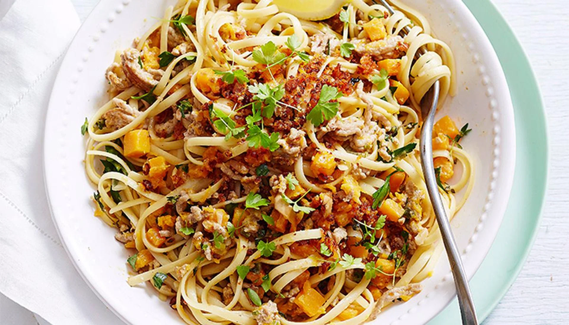 Creamy Pumpkin & Pork Ragu With Linguine