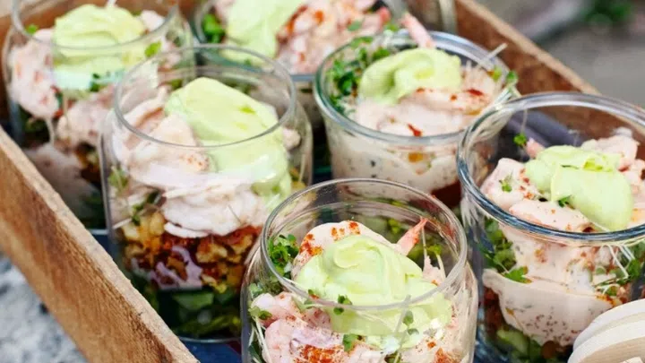 Cocktail sauce, avo, tomatoes and crispy pancetta crumbs come together for a delicious mish-mash of flavours in this unique prawn cocktail ready to impress at any party.