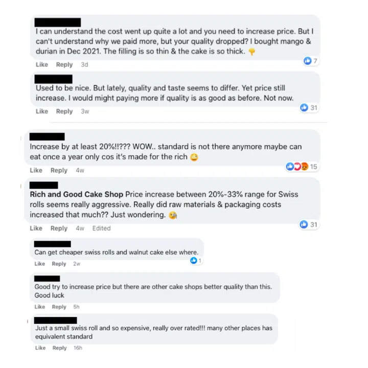 Many shared that over the years, the quality of the local brand's bakes have dropped, which does not justify the price increase.