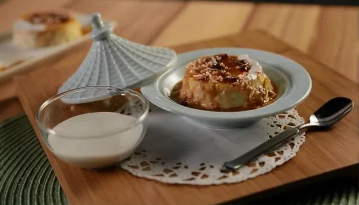 Coconut cream, eggs and milk make a heavenly flan that is topped off with caramelised sugar and zesty passion fruit.