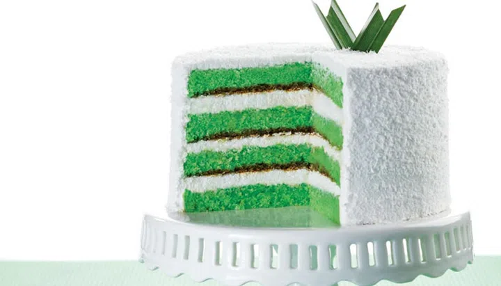 The traditional ondeh-ondeh that features green-coloured balls of glutinous rice balls filled with liquid palm sugar and coated in grated coconut, now comes in a cake version. An innovation of the classic ondeh-ondeh, this ondeh-ondeh cake will be a definite standout at any festive gathering.