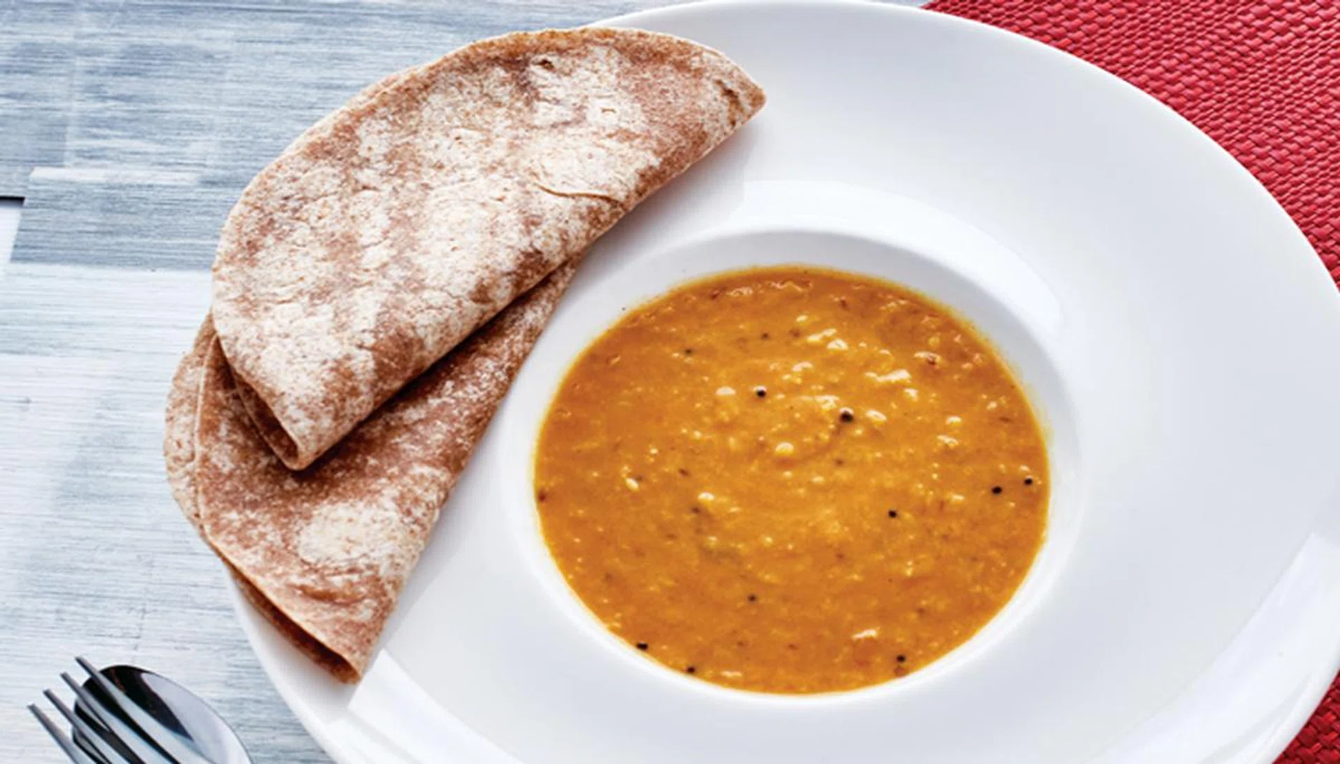 05. Serve dhall in a bowl with chapatis at the side.