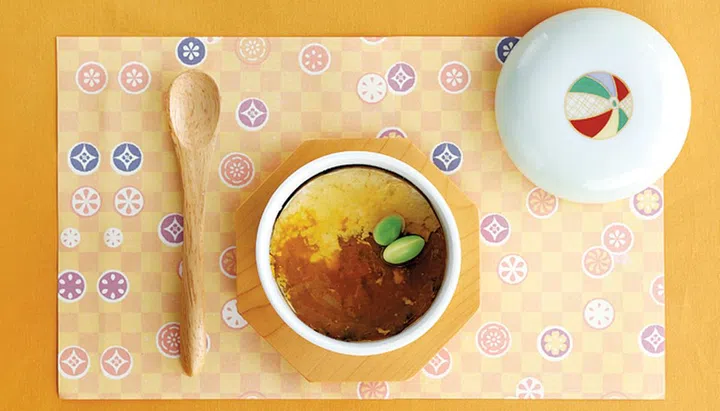 Chawanmushi is a classic Japanese steamed egg custard served in a tea cup. Using this method of steaming, this recipe substitutes egg with kabocha and tofu to achieve a soft, smooth texture with rich umami.