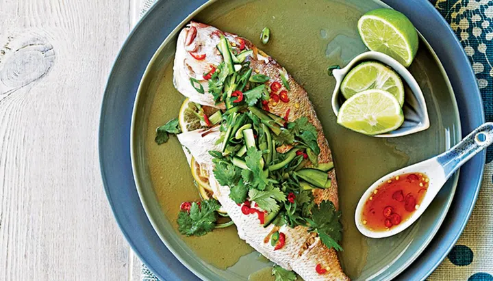 For something with a bit more spice, try this Thai-style sea bass that's blanketed with a lime, garlic and chilli dressing.