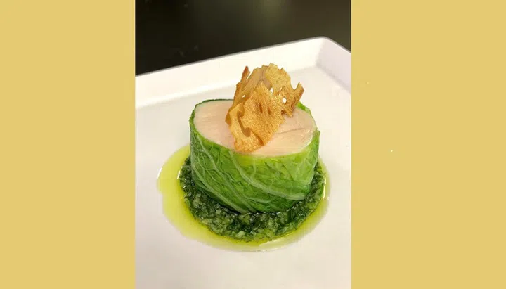 Get creative by wrapping chicken breast in steamed lettuce leaves, and then placing it atop a spoonful of fragrant ginger scallion sauce. Lotus root chips add a unique finishing touch! This heart-healthy dish was created by MasterChef Asia finalist Chef Lennard Yeong.